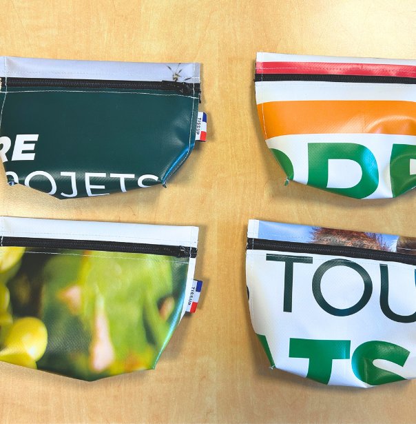 Chaque trousse raconte ainsi une histoire : celle d’un support transformé, d’un geste utile pour la planète et d’un travail collectif qui favorise l’inclusion professionnelle.