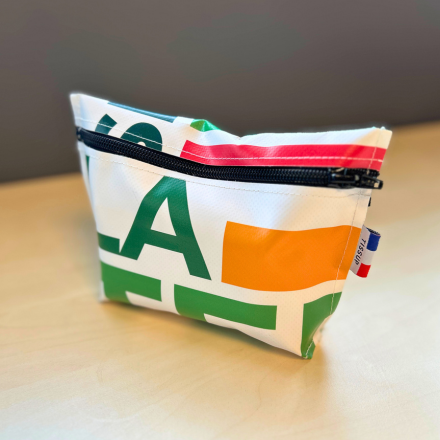 Plutôt que de les voir finir à la poubelle, nous avons fait le choix de leur offrir une seconde vie. 10 kakémonos ont ainsi été collectés et confiés à Tissup, une entreprise spécialisée dans l’upcycling de supports textiles issus de la communication événementielle. Grâce à cette action, ces bâches initialement destinées au rebut ont été transformées en 200 trousses uniques, à la fois pratiques et résistantes.